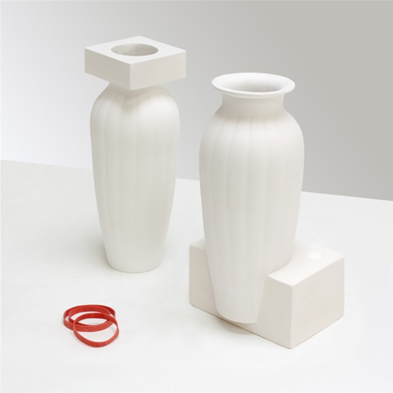 石膏注漿成型的模具通常在使用后就被丟棄。這些白色優(yōu)美剛?cè)岵?jì)的花瓶從模具中來(lái)并表達(dá)出通常不為人們所見(jiàn)的模具之美。